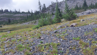 We were climbing over the shoulders of some volcanic cones, and the uneven up-and-down trail after so many days of perfectly flat smooth trail was difficult. However, after that day, my feet never hurt again the way they did in central Oregon. Rough lava rock, while tiring and inconvenient, was better for my feet than a smooth trail!